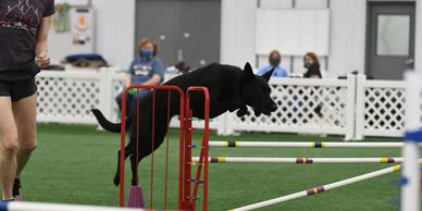This class starts dogs on higher obstacles; adding new handling skills for the handler; the beginning of front crosses; rear crosses; blind crosses; tandems; weave poles and teaching the dog how to be more proficient on the obstacles. This also starts the handler on how to analyze a novice course and introducing jumping skills to the dogs such as the broad jump; double jump, triple jump and working around wing jumps.